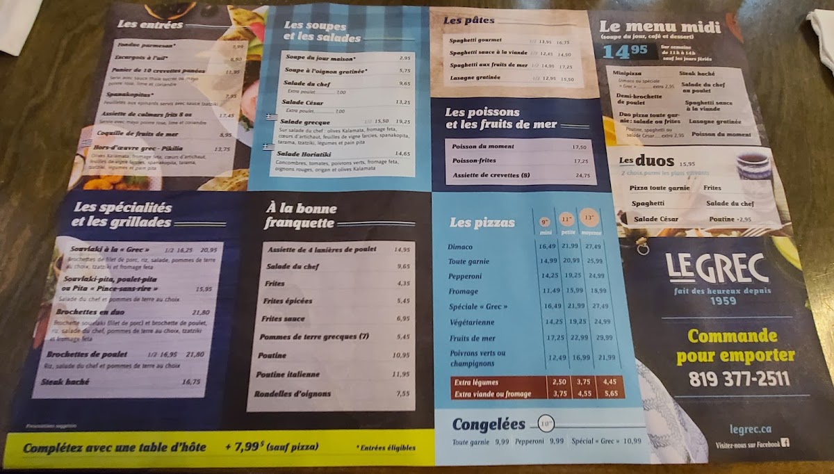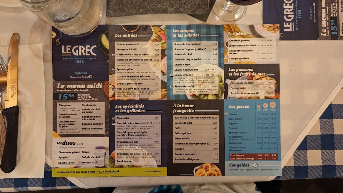 Welcome to Restaurant Le Grec, a culinary gem nestled in Trois-Rivières since 1959. This expansive eatery captures the essence of traditional Greek dining with a vibrant taverna ambiance. As you step inside, you're greeted by the warm sounds of Greek music and the friendly faces of waitstaff in traditional garb.